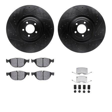 8612-20018, Rotors-Drilled, Slotted-Black w/ 5000 Euro Ceramic Brake Pads incl. Hardware, Zinc Coat