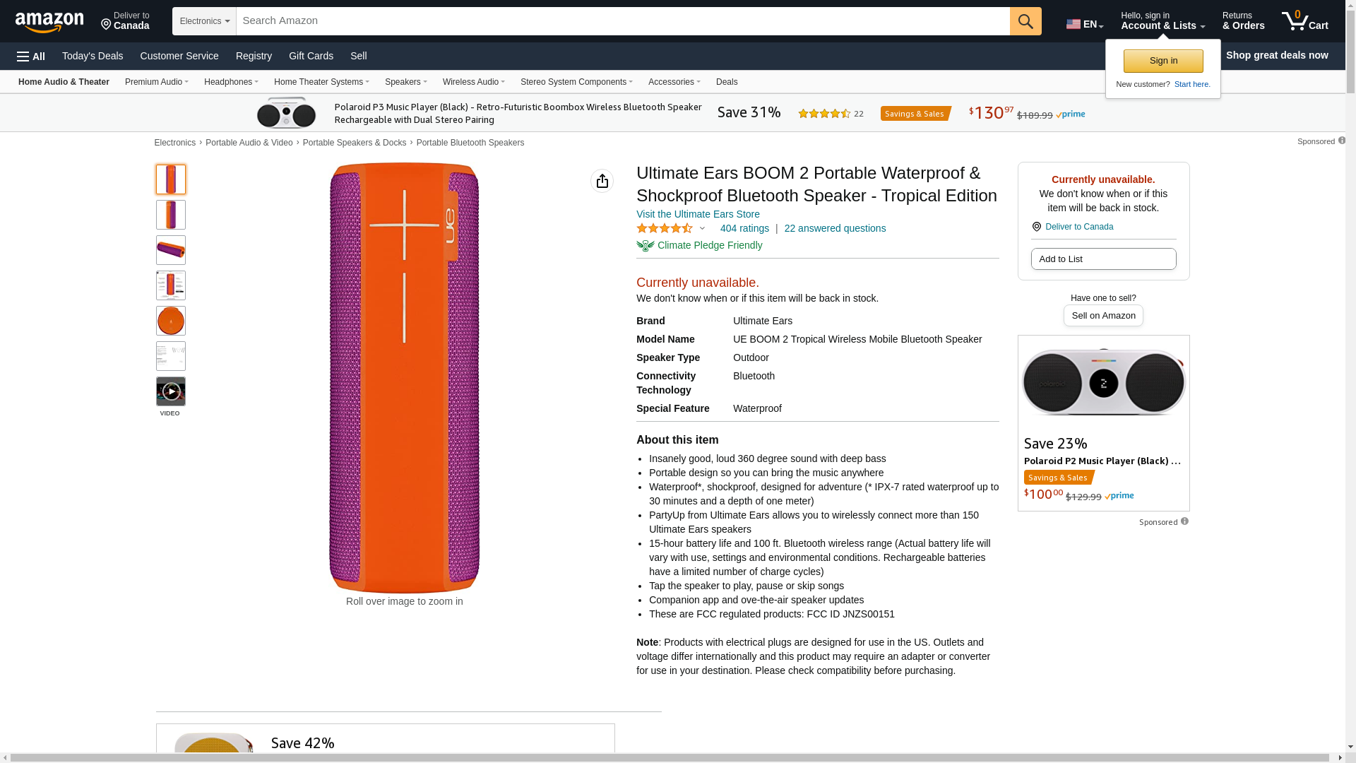 Ultimate Ears BOOM 2 Portable Waterproof & Shockproof Bluetooth Speaker - Tropical Edition