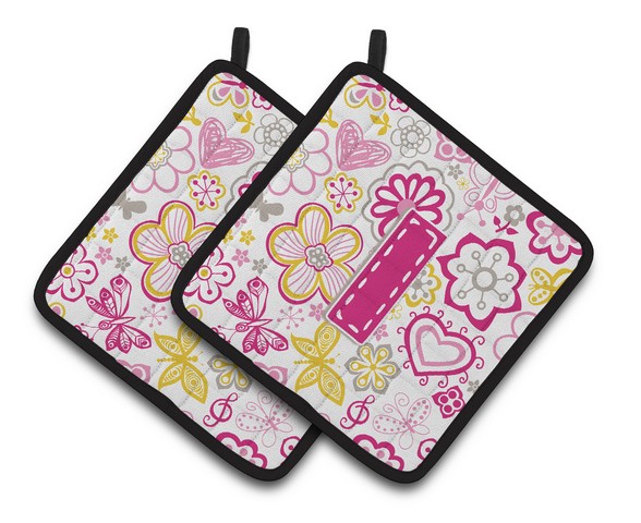 Carolines Treasures CJ2005-IPTHD Letter I Flowers & Butterflies Pink Pair of Pot Holders, 7.5 x 3 x 7.5 in.