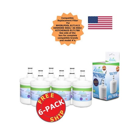 6 Pack, This Filter is a direct replacement for the following refrigerator filter model numbers:Kitchenaid and Whirlpool:8171413, 8171414, 2204324, 2204326, 2206039, 2213384, 8171787, 8171788Sears:46-9002 and 9002P. Sears:46-9002 and 9002P. Whirlpool:WFI-NL200, WF1-NL200, WFI-NLC200, WF1-NLC200, WFI-NLCS200, WF1-NLCS200, NCL200 and WFINL200, WF286, 46-9002, 046-9002, 04609002000, 0469002, 9002, 09002, 09002P, 2206048, 4609002000, 469002, 8171413, 8171413P, 8171413R, 8171413T, 8171414P, 8171