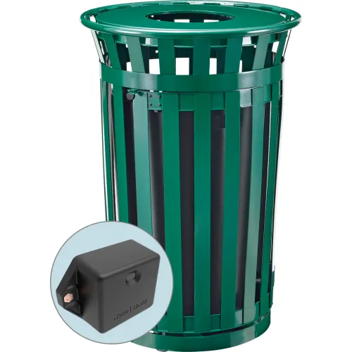 Global Industrial TrashTalk Outdoor Slatted Trash Can w-Door & Flat Lid, 36 Gal. 261940GNT GLO-261940GNT - SIM Supply