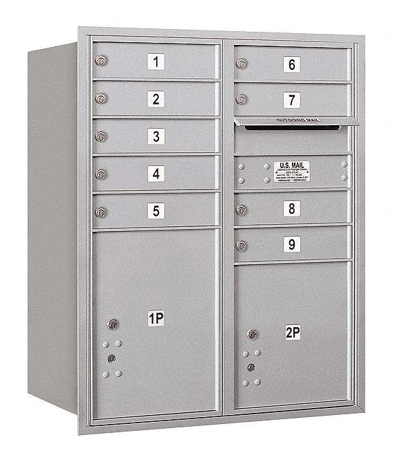 Features. 4C horizontal mailboxes are U.S.P.S. Approved. Ideal for apartments commercial buildings and residential developments. Required for new construction and major remodels. U.S.P.S. standard 4C requires a minimum of 1 parcel locker for every 10 tenant compartments. For indoor or outdoor use. Constructed of heavy duty aluminum and stainless steel hardware. Doors include a heavy duty cam lock with a dustrain shield and 3 keys. MB1 doors are 13.25 W x 3.25 H in.. Fully integrated and stand-alone parcel lockers. Include factory installed 0.75 W x 0.25 D in. trim and 1 or 2 heavy duty rear access doors with latches and continuous hinges. Finish - Aluminum. Dimension - 31.12 W x 37.5 H x 17 D in.. Weight - 130 lbs.Options. Custom engraved placards. Custom engraved doors - regular. Custom engraved doors - black filled. Replacement locks. Additional keys. Key blanks