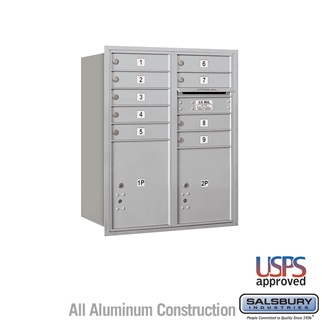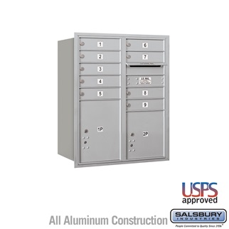 SalsburyIndustries 3710DA-09ARU Double Column 4C Horizontal Mailbox Rear Loading 9 Mb1 Doors, Aluminum