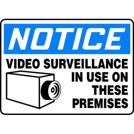 Accuform MASE816VP, 7" x 10" Plastic OSHA Sign with Legend: "Video Surveillance in Use on These Premises" Post informative signs stating the premises are under video surveillance. Unique graphic shows video surveillance Traditional OSHA-style signs, tags and labels are the most widely recognized design format in the industry Notice header indicates information considered to be important but not hazard-related Plastic (VP) - Plastic combines standard, reliable performance with 92% recycled content to create a dependable, Earth-friendly material solution. Semi-flexible, impact-resistant plastic signs are ideal for standard-duty use -- for installation indoors and for protected, short-term outdoor applications. Get the look, feel and characteristics of non-recycled plastic signs in an environmentally friendly version.