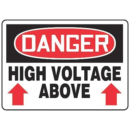 Accuform MELC178VS Sign, Legend "Danger HIGH Voltage Above", 7" Length x 10" Width x 0.004" Thickness, Adhesive Vinyl, 7" x 10", Red/Black on White