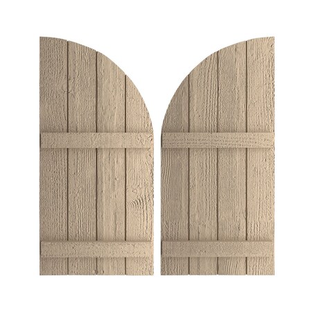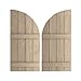 Ekena Millwork SHUBJQ22X70RSPR (48" Low Side) Timberthane Four Joined Board-n-Batten w/Quarter Round Arch Top Faux Wood Shutters (Per Pair), Primed Tan, 22" W x 70" H