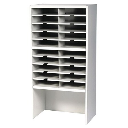 Twenty 3 in. high sorting pockets. Pockets sized to accommodate commonly used 10 in. W x 13 in. D flat envelopes. Made from durable steel. No assembly required. Standard Pocket: 11.63 in. W x 13.25 in. D x 2.63 in. H. Overall: 24 in. W x 13.25 in. D x 46.25 in. H (85 lbs.).