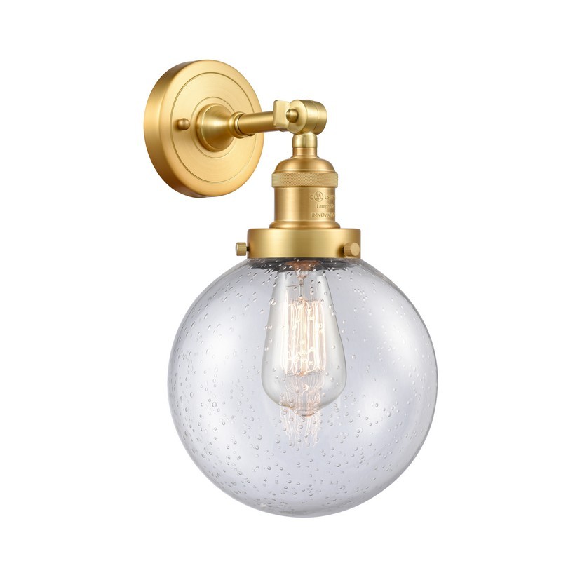 Innovations Lighting 203-SG-G204-8 Beacon - 1 Light Wall Sconce In Industrial Style-14 Inches Tall and 8 Inches Wide, Finish Color: Satin Gold, Glass Color: Seedy