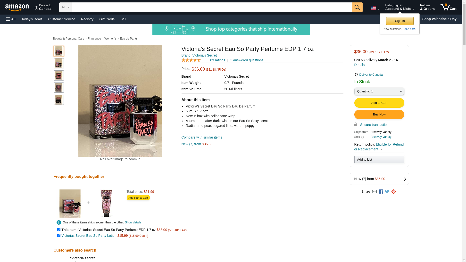 | Feature | "Victoria's Secret Eau So Party Eau De Parfum" |