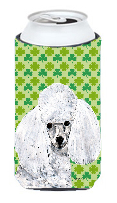 Caroline's Treasures SC9725TBC White Toy Poodle Lucky Shamrock St. Patrick's Day Tall Boy Hugger Can Cooler Sleeve Hugger Machine Washable Drink Sleeve Hugger Collapsible Insulator Beverage Insulated