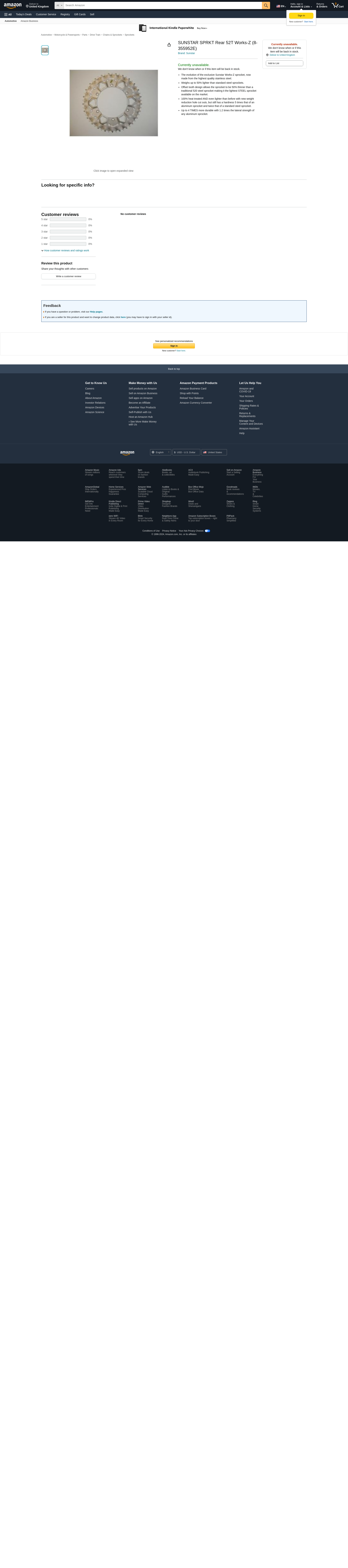 Sunstar Sprocket Rear 52t Works-Z | 8-355952E