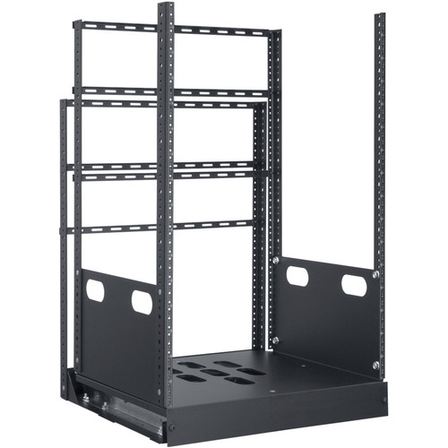 Lowell LPTR2-1619 LPTR2 Series 16U x 19 Inches Deep Pull and Turn AV Rack; Removable Base Mounts Flush or Recessed (Up to 1.75 Inches); Integral Turntable with Push-Button Release<br><br> For built-in applications in credenzas, cabinetry or millwork, the top section of the rack slides forward on two (2) support rails set into its base, then rotates left or right and locks at 60 or 90 degrees for superior access to equipment and connections. The rack features 4 corner post mounting rails and a front securing/finishing panel. Ships unassembled in 2 cartons<br><br> Key Features:<br> - Removable base mounts flush or recessed (up to 1.75 inches)<br> - Integral turntable with push-button release<br> - 2 bottom rail slides (for loads to 125 lbs.)<br> - 11-gauge steel corner post mounting rails tapped 10-32<br> - Front panel attaches with screws to secure rack in the rolled-back position<br> - 6 cable lacing bars<br> - Black powder epoxy finish<br> - Ships unassembled (2 cartons)<br> <br> Specifications:<br> - Load Capacity: 125 lbs<br> - Rack Space: 16U<br> - Post Mounting Rails (4): 16U<br> - Rear Tie Rails (2): 14U<br> - Bottom Slide Rails: 2<br> - Construction: 14-ga. certified U.S. steel base and 11-ga. corner post rails<br> - Finish: smooth black powder epoxy finish<br> - Compliance: EIA/TIA compliant. RoHS compliant<br> - Height: 30.65 inches<br> - Width: 19.13 inches<br> - Depth: 19.68 inches (19 usable)<br> - Shipping Weight: 66 lbs