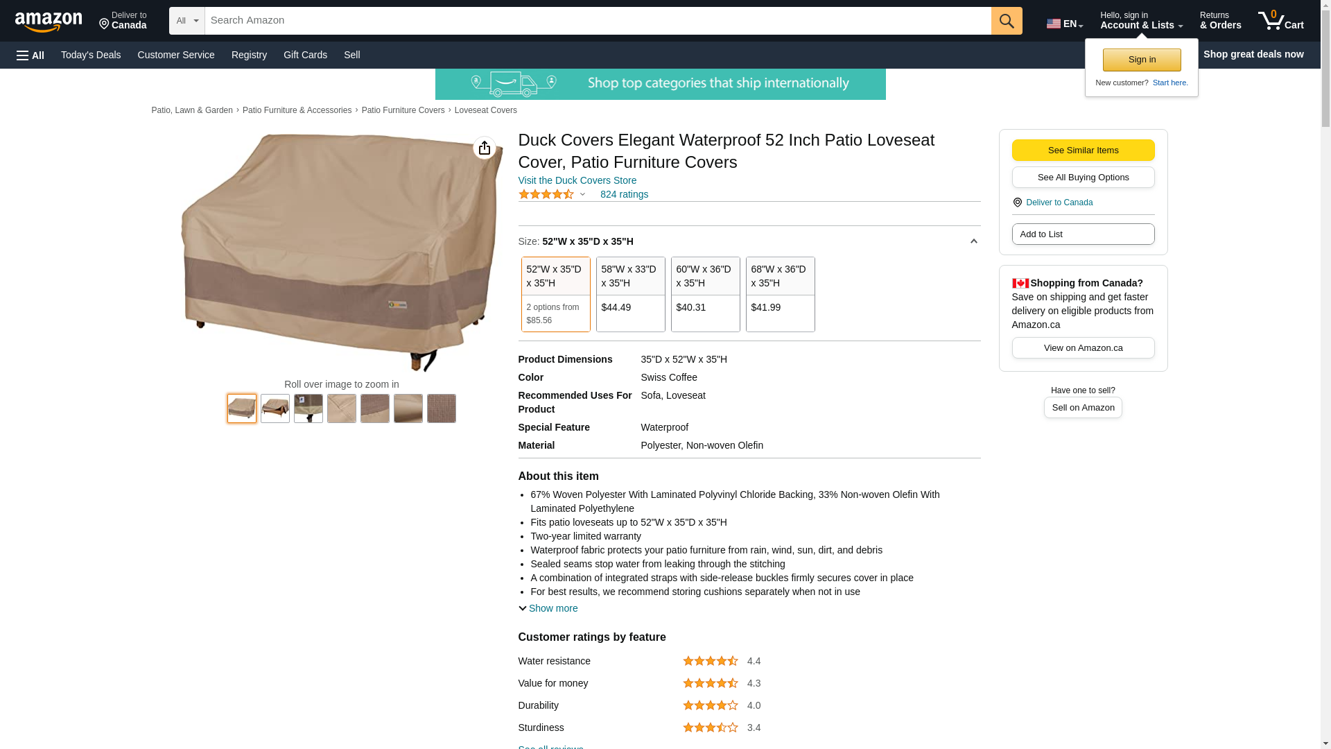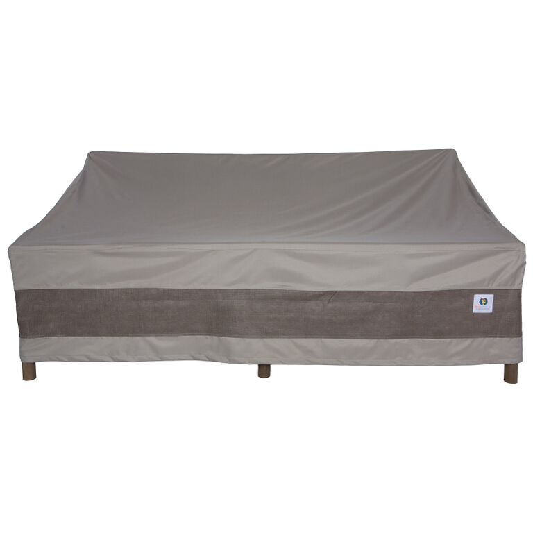 Love your loveseat tender with the Duck Covers Elegant Patio Loveseat Cover. Offered in multiple sizes (subject to availability), you're assured a great fit. With a Duck cover, water rolls right off so you can get out there and enjoy your loveseat after the rain. Protect your cushions against dust, dirt, UV rays, moisture, insects, and snow. Breathable side panels prevent condensation from forming underneath the cover. High-strength polyester resists tearing and abrasion and is covered by a two-year limited warranty. Dimensions Small: 54W x 37D x 35H in. Medium: 62W x 38D x 35H in. Large: 70W x 41D x 35H in. Additional limited-time savings reflected in current price. Choose an available size. Strong polyester stands up to wind and rain. Stops condensation with breathable side panels. Factory sealed seams for true waterproofing. UV-stable fabric resists fading. Swiss coffee color. 2-in. Wide hook and loop closures.