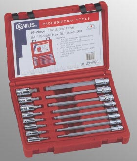 Genius BS-2316WS 16 Piece 1/4" & 3/8" Dr. SAE Wobble Hex Bit Socket Set : Apexinds.com