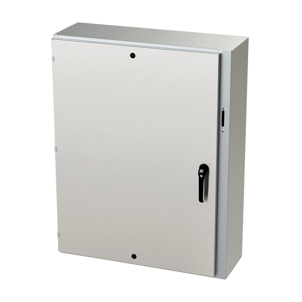 48.00 in X 37.38 in X 12.00 in 304 Stainless Steel Enviroline Series Single-Door Enclosures For Flange-Mounted Disconnects – SCE-48XEL3712SSLP Application – These 304 Stainless Steel Enviroline Series Single-Door Enclosures For Flange-Mounted Disconnects from Saginaw are designed to house most standard type disconnects. For outdoor application a drip shield is recommended. For installation information, consult our Installation Manual at Saginaw Control.