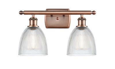 INNOVATIONS LIGHTING 516-2W-AC-G382-LED BALLSTON CASTILE 2 LIGHT 16 INCH CLEAR GLASS VANITY LIGHT, ANTIQUE COPPER, LED
