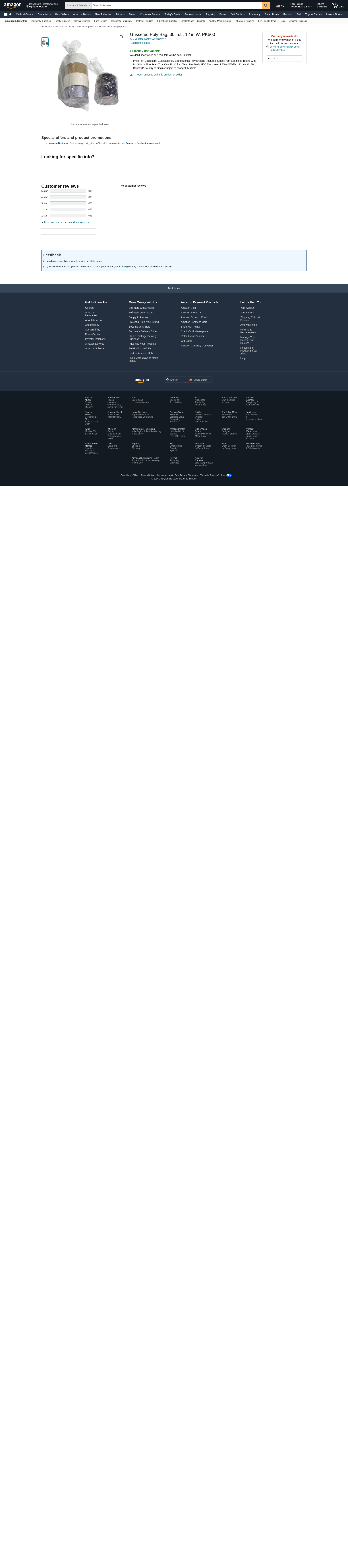 | Feature | <b>Price For:</b> Each <b>Item</b>: Gusseted Poly Bag <b>Material</b>: Polyethylene <b>Features</b>: Made From Seamless Tubing with No Slits or Side Seals That Can Rip <b>Color</b>: Clear <b>Standards</b>: FDA <b>Thickness</b>: 1.25 mil <b>Width</b>: 12" <b>Length</b>: 30" <b>Depth</b>: 8" <b>Country of Origin (subject to change)</b>: Multiple |