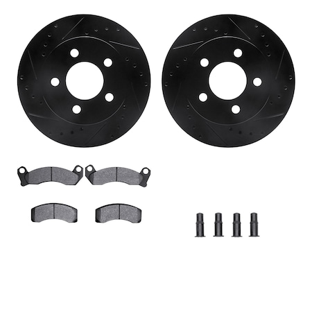 8212-56015, Rotors-Drilled, Slotted-BLK w/Heavy Duty Brake Pads incl. Hardware, SLVGeospec Coat,