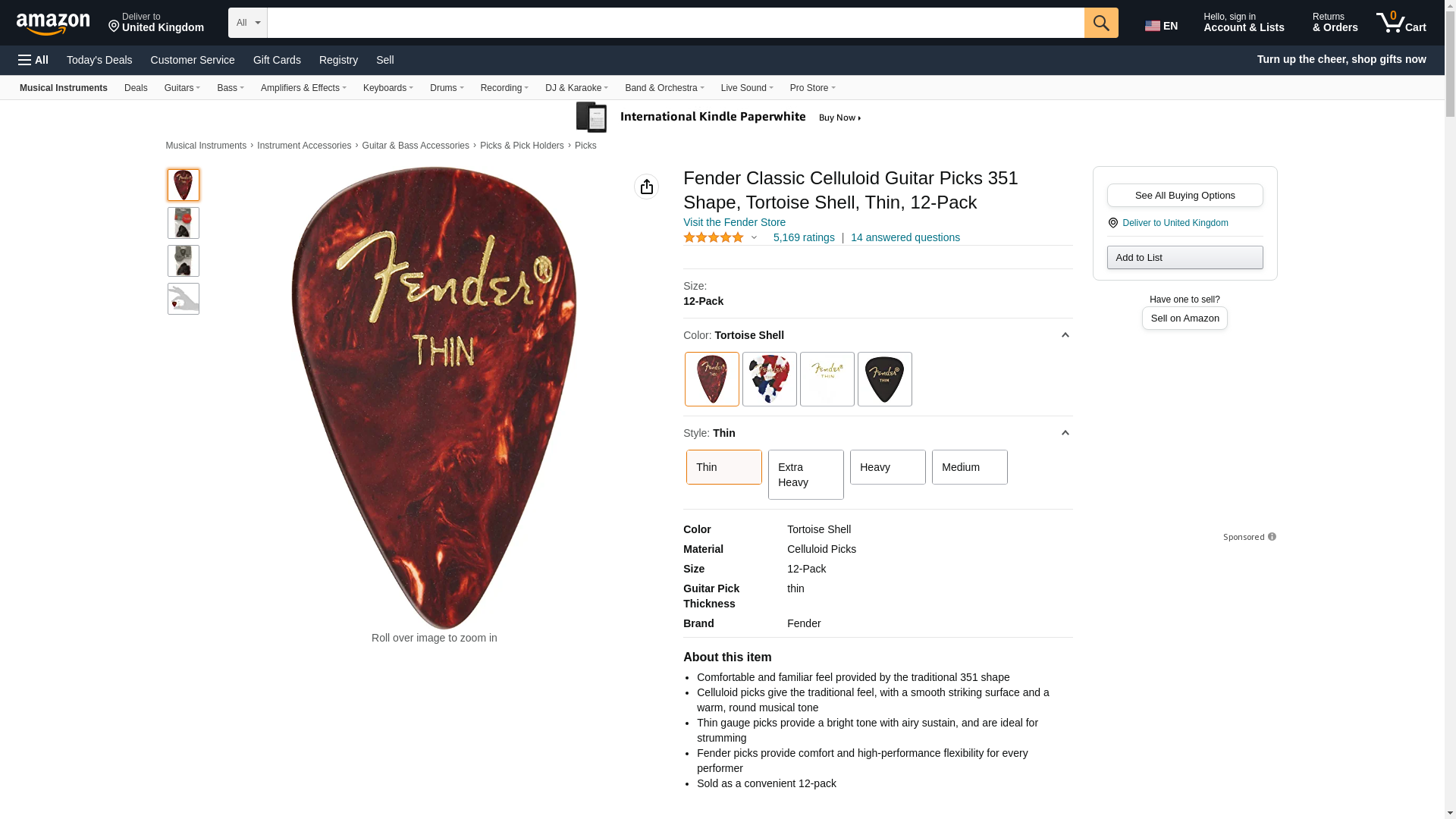 Fender 351 Shape Classic Thin Celluloid Picks, 12 Pack, Shell for electric guitar, acoustic guitar, mandolin, and bass: Maxedbuy.com