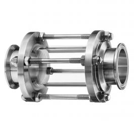 This sight glass include sanitary quick-clamp connections and allow for visualizing the flow and clarity within the process line. For use with food and beverage.