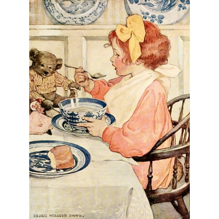 The Seven Ages of Childhood 1909 Greedy taste for porridge Poster Print by Jessie Willcox Smith