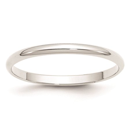 14k White Gold Polished 2mm Lightweight Half Round Wedding Band Size 11.5