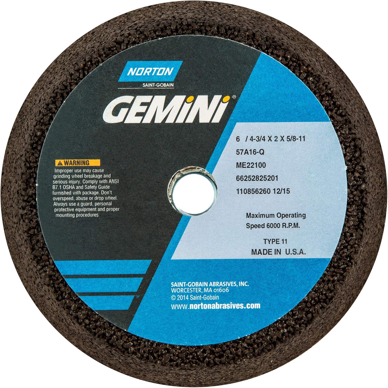 Norton 66252825201 6x2x5/8 in. Gemini AO Non-Reinforced Portable Snagging Wheels, Type 11, 16 Grit, 5 Pack