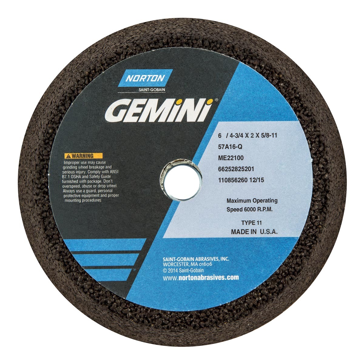 Take on your shop's toughest heavy duty jobs with this Gemini AO Type 11 non-reinforced portable snagging wheel. Its durable aluminum oxide abrasive keeps cool as it grinds over both hard and soft alloys including 300 and 400 series steel, titanium, carbon steel alloys and even the softer copper and aluminum pieces you're working with. Capable of delivering good-tier performance on grinders of many power levels, this wheel can almost effortlessly remove stock from ductile iron as well as put a gleaming finish on brass fittings. Package of 5.