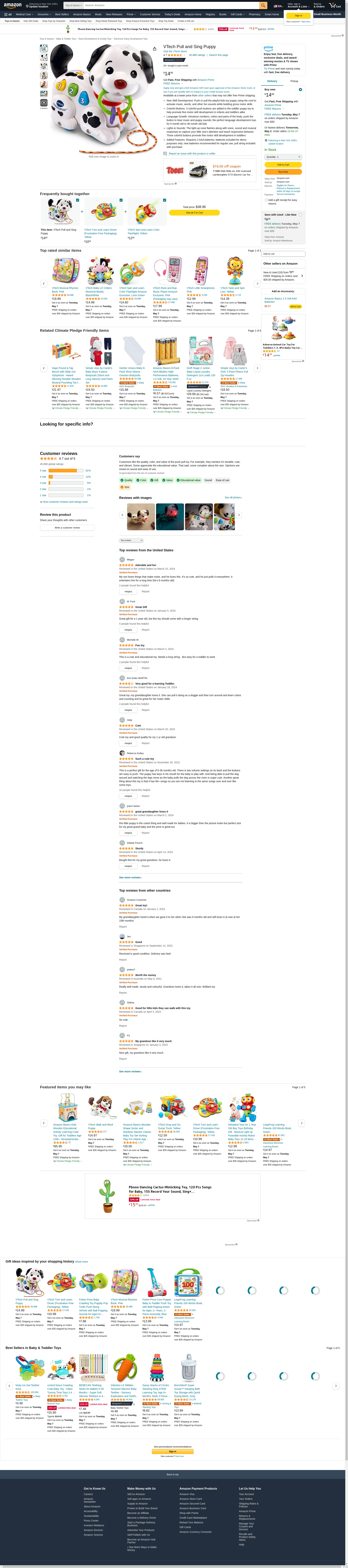 | Feature | Get ready for fun and adventures with the Pull and Sing Puppy by VTech; pull or push the playful puppy to activate music while building gross motor skills |