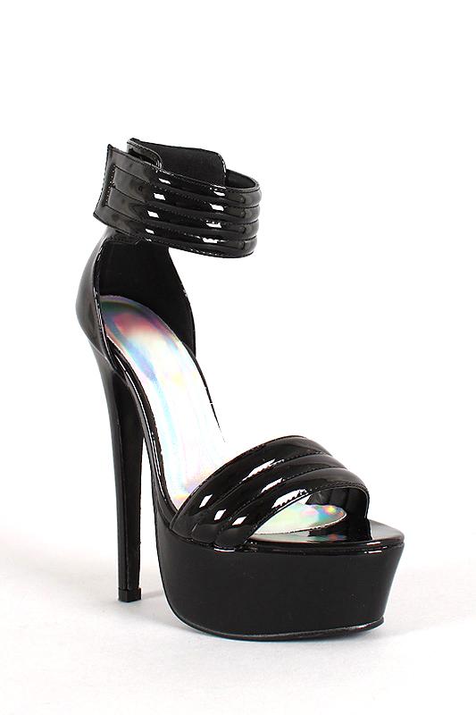 Bella Vi B514V390BLK9 Avis-27 Patent Ankle Strap Open Toe Platform Heel, Black - Size 9