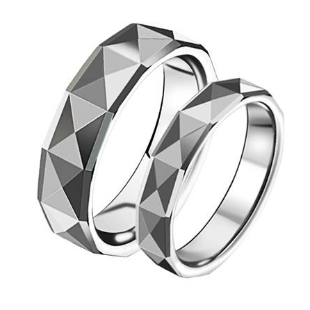 CET Domain SZ17-R162-7 Titanium Steel Silver Prism Couple Rings- Men-Size 7