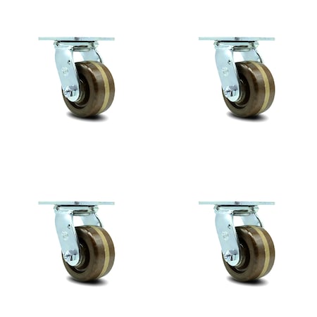 4 Inch High Temp Phenolic Swivel Caster Set with Roller Bearing and Swivel Lock