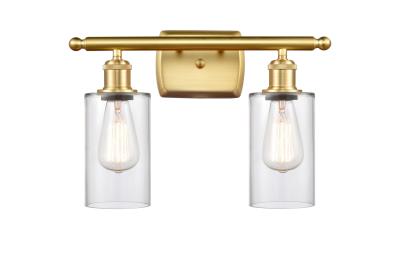 INNOVATIONS LIGHTING 516-2W-SG-G802-LED BALLSTON CLYMER 2 LIGHT 16 INCH CLEAR GLASS VANITY LIGHT, SATIN GOLD, LED