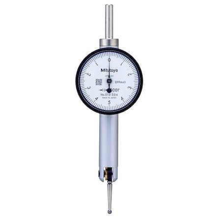 Item Horizontal Dial Test Indicator, Range 0 in to 0.01 in, Graduations 0.0001 in, Long Form Calibration Certificate No, Contact Point Dia. 0.078125 in, Dial Color White, Dial Reading 0-5-0, Dial Size 1.25 in, Dimension Type Inch, Included Certification Short Form Certificate of Inspection with NIST Traceability, Includes Dovetail Mount Attachments No, Maximum Measurement - Inch 0.01 in, Minimum Measurement - Inch 0 in, Number of Indicators 1, Operation Type Lever-Style