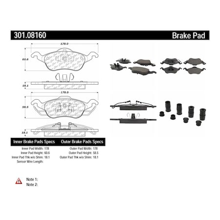 Centric Premium Ceramic Brake Pads with Shims Front Ford Focus 2003 | 301.08160