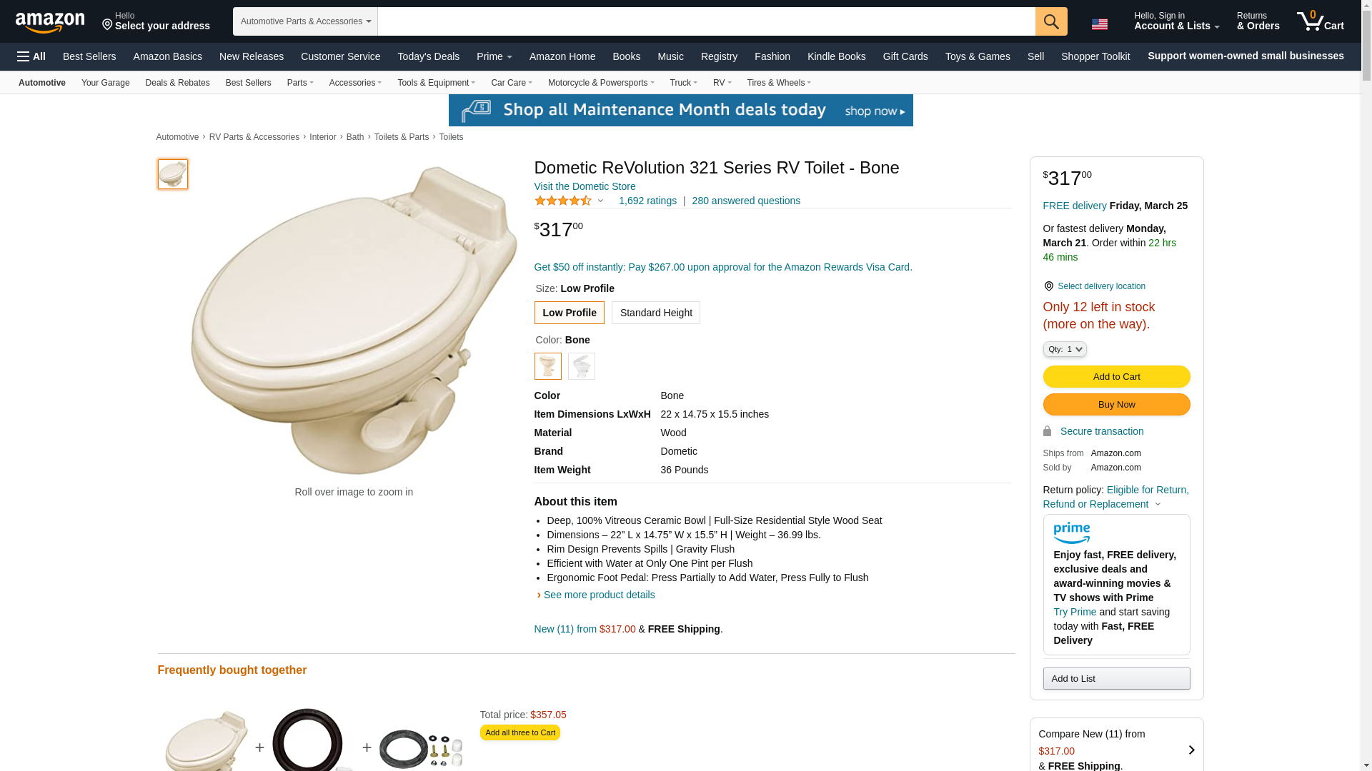 Dometic 320 Series Standard Height RV Toilet w/Hand Spray, Bone