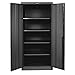 HALLOWELL Commercial Storage Cabinets are perfect for storing office products, maintenance and janitorial supplies or other lightweight items. Tough steel construction features adjustable shelves that accommodate various-sized items. Double doors swing out on 16-gauge continuous piano hinges and are reinforced with full-height stiffener channels for added strength. Doors are factory hung in all-welded frame to ensure accurate fit and proper operation. 22-gauge steel cabinet and shelves. Chrome-plated handle with keyed lock. Corner foot gussets provide extra rigidity and stability. Durable powder coat finish.