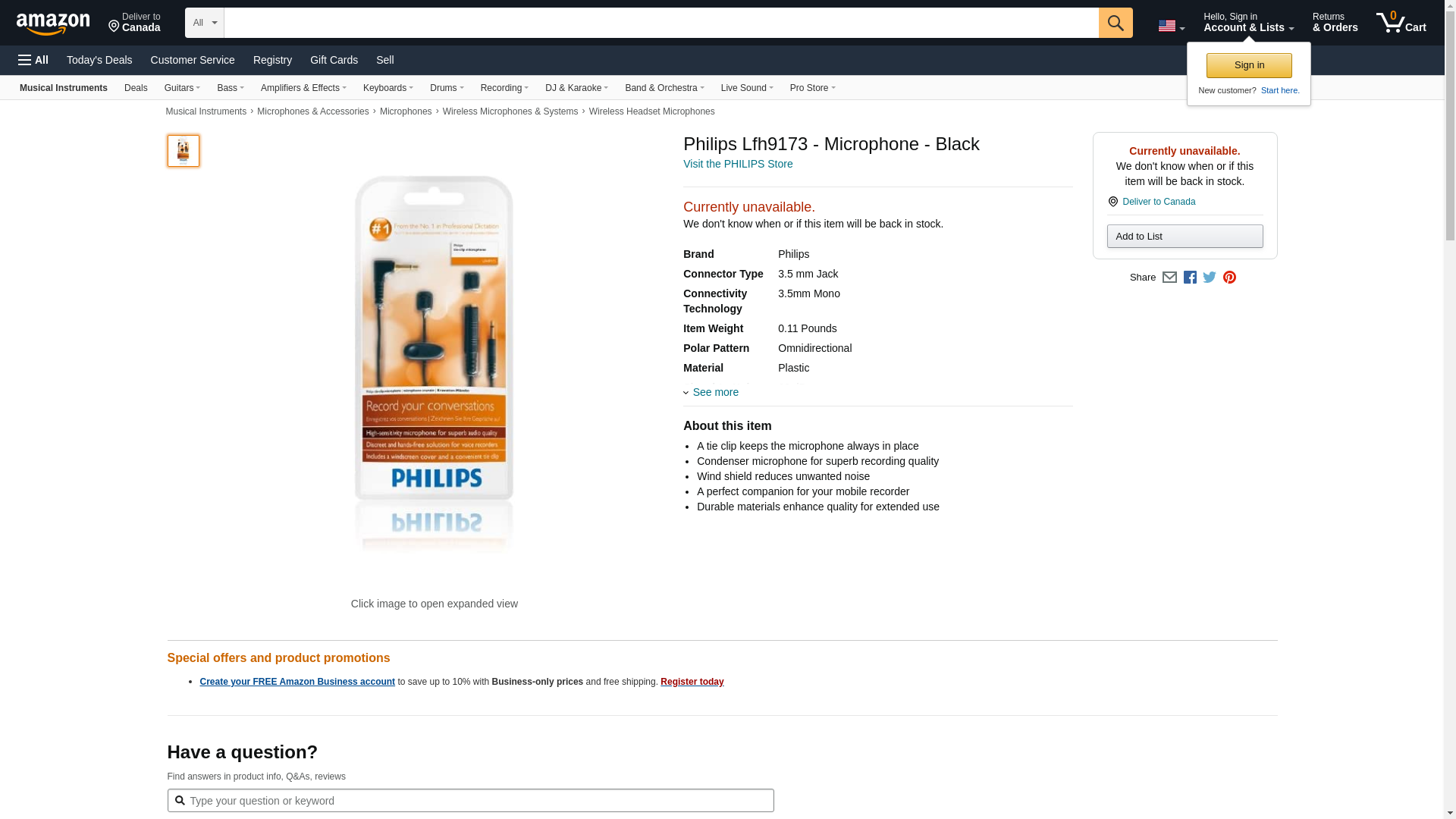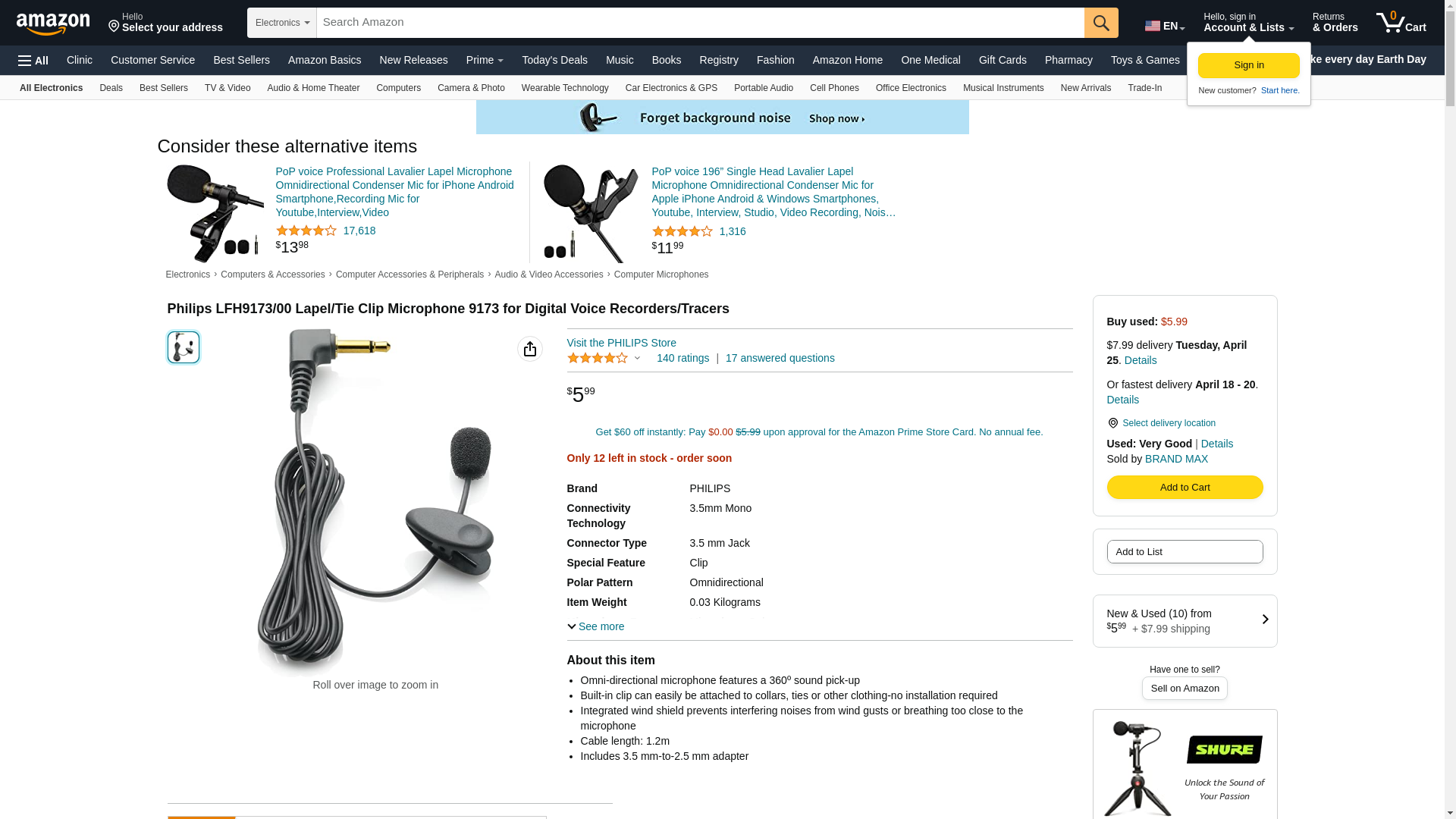 | Feature | Philips LFH9173/00 Speech Tie/Collar Clip Microphone |