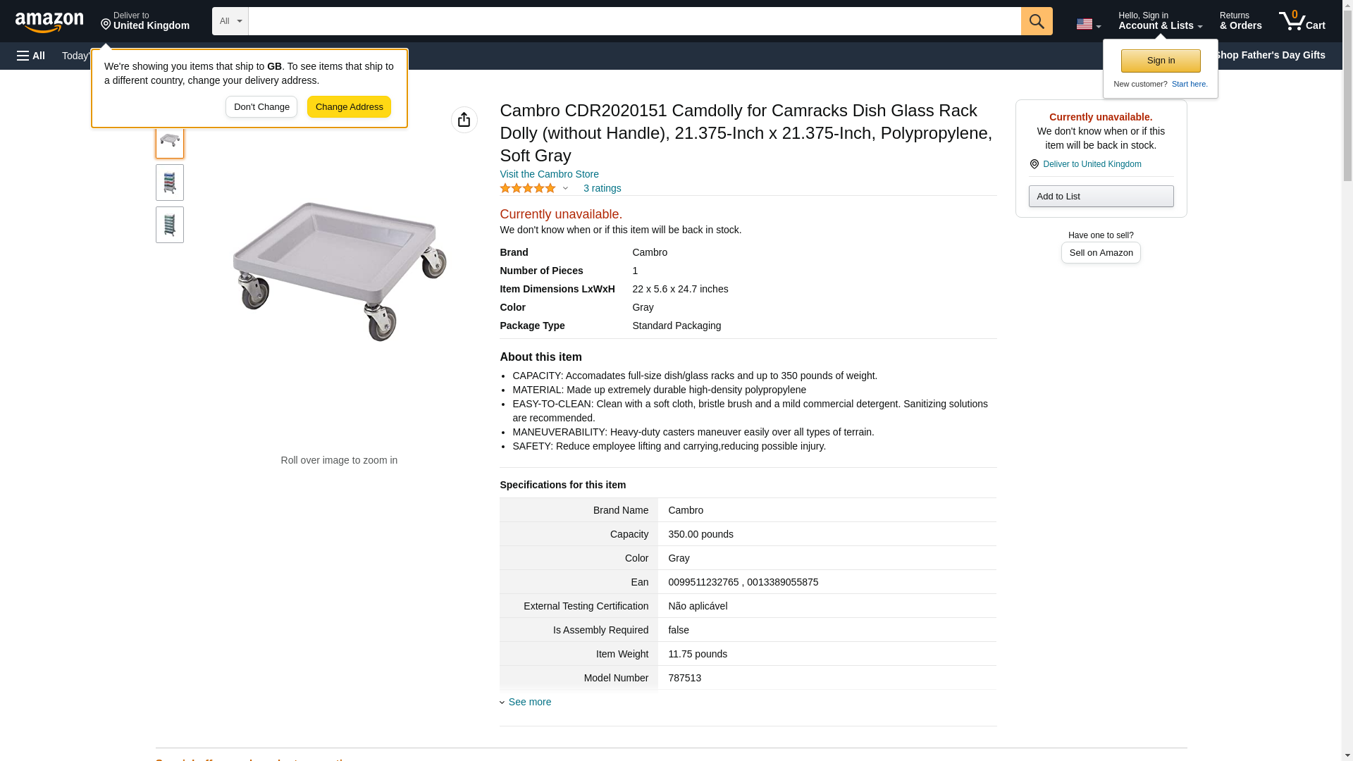Cambro CDR2020151 Camdolly for Camracks Economy Model Soft Gray Case of 1