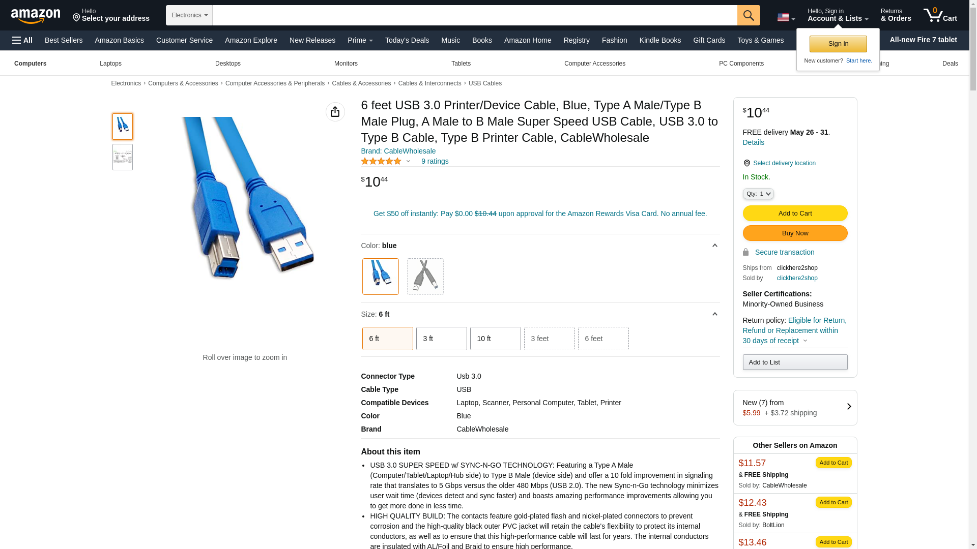 | Feature | USB 3.0 Type A Male / Type B Male Cable 6 ft. |