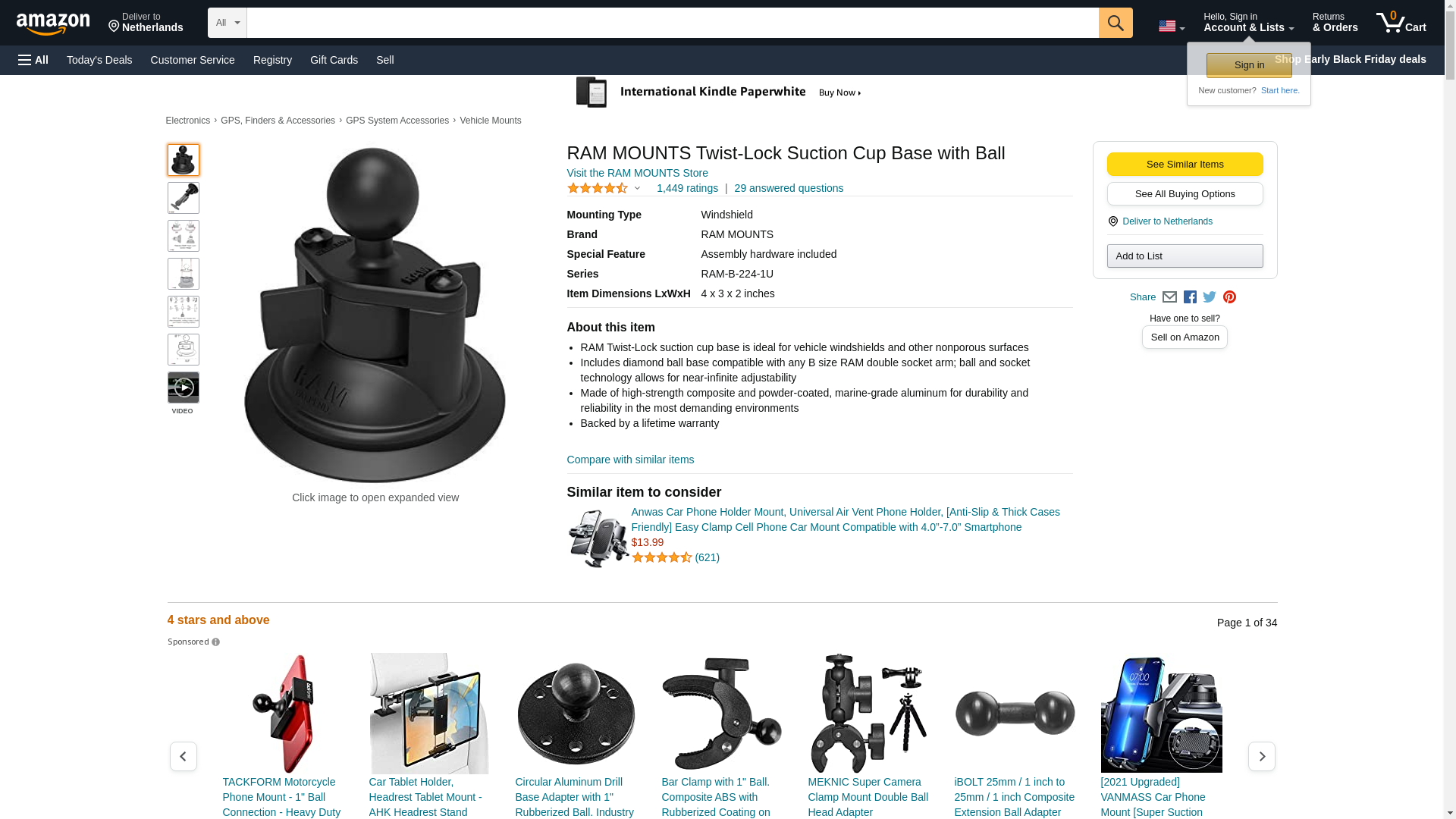 - RAM Twist-Lock suction cup base is ideal for vehicle windshields and other nonporous surfaces