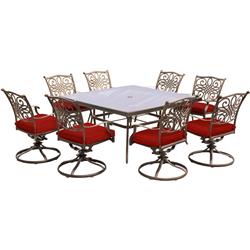 Hanover Traditions Square Glass-Top Table 9 Piece Dining Set, Red