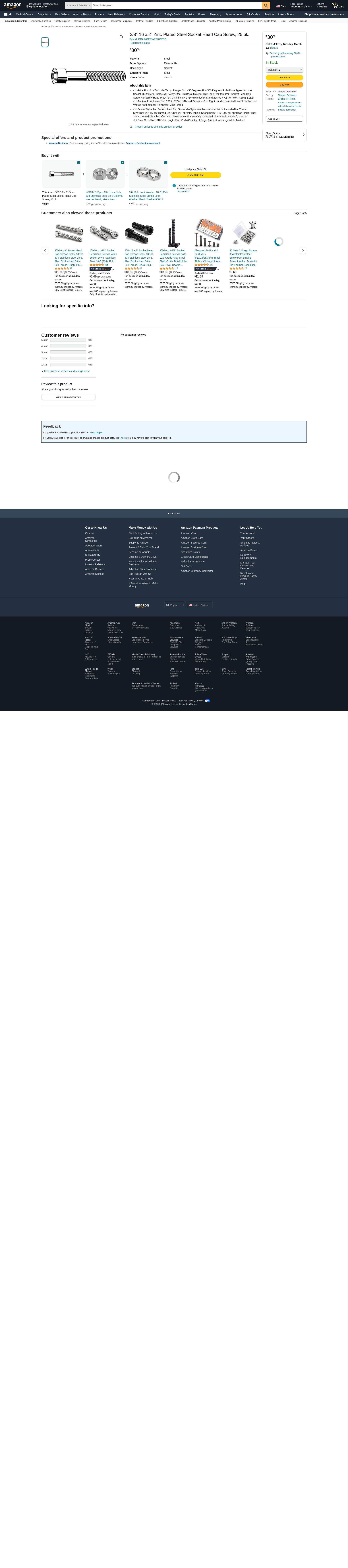 'Socket Head Cap Screw, System of Measurement Inch, Cylindrical, Basic Material Steel, Material Grade Alloy Steel, 3/8 In.-16, Length 2 In., Fastener Finish Zinc Plated, Fastener Thread Type UNC, Drive Type Hex Socket, Drive Size 5/16 In., Thread Style Partially Threaded, Thread Direction Right Hand, Thread Length 1-1/4 In., Head Height 3/8 In., Thread Dia. 3/8 In., Package Quantity 25'