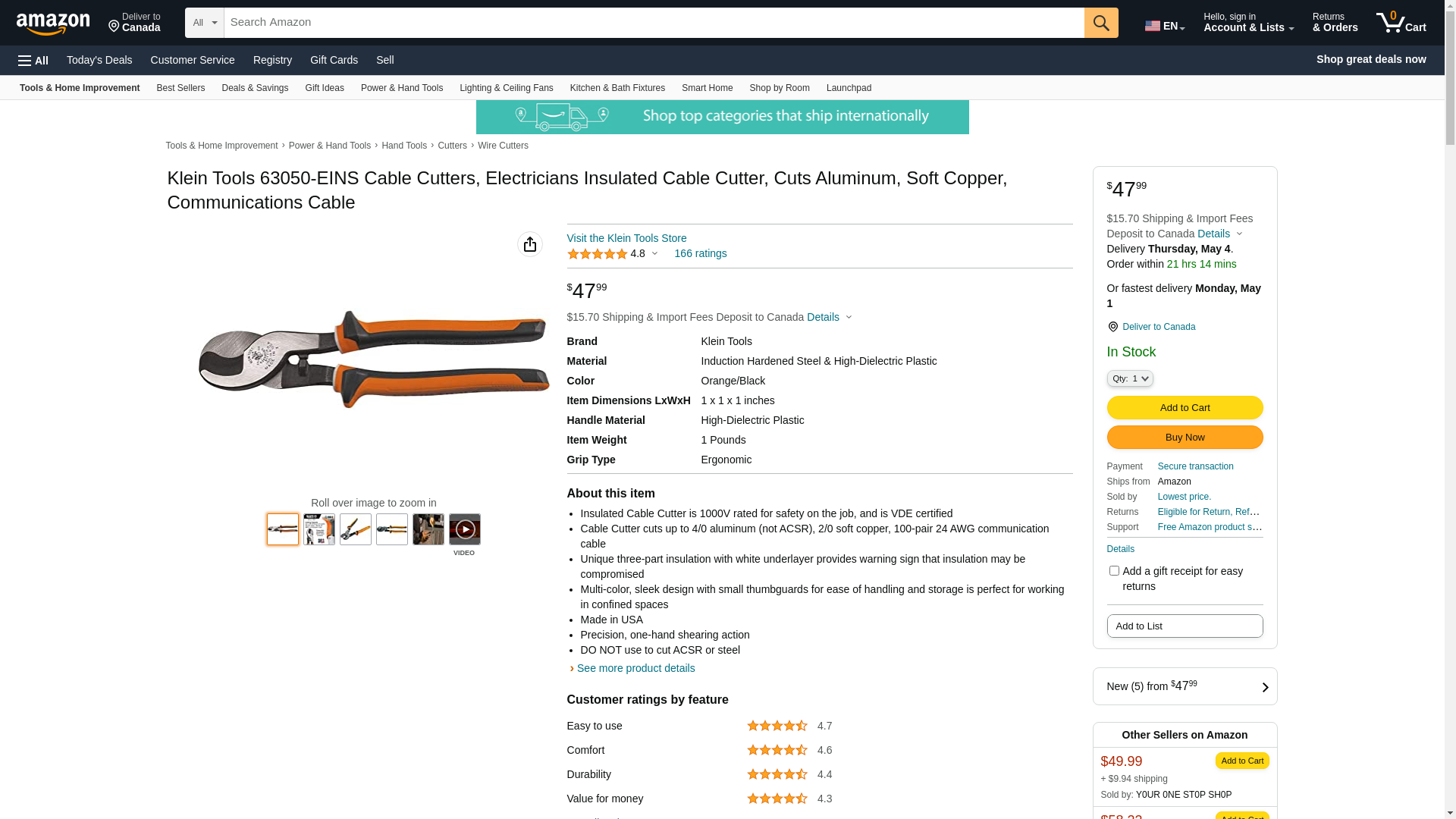 | ToolUp.com | KLEIN 63050-EINS | 1 | -2 | 1 | 1 @ $64.99 |
