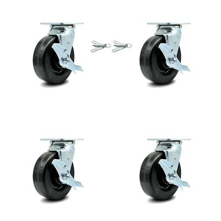 Phenolic Swivel Top Plate Caster Set of 4 w/6" x 2" Black Wheels-Includes 2 Swivel with Brakes and Bolt on Swivel Locks & 2 Swivel with Brakes-4800 lbs Total Capacity-Service Caster Brand