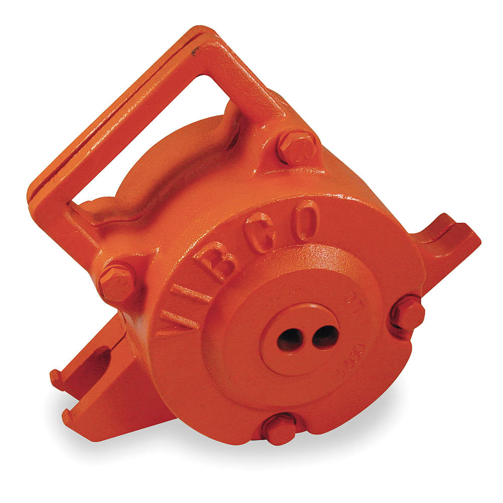 Pneumatic Vibrator, Air Flow Rate 56 cfm @ 80 psi, Maximum Force 6,100 lbf, Maximum Vibration Speed 9,000 vpm, Sound Level 82 dBA, Duty Cycle Continuous, Pneumatic Vibrator Type High Frequency, Force @ PSI 4,950 lbf @ 80 psi, 5,500 lbf @ 90 psi, 6,100 lbf @ 100 psi, Mount Type Lug-style, Rigid, Force @ 80 psi 4,950 lbf