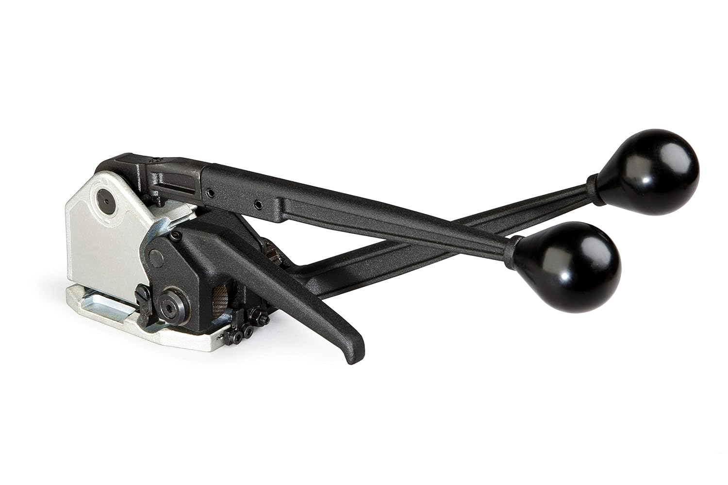 Teknika regular duty sealless combination tool for steel strapping. Lightweight. Reversible dies. Low maintenance cost. Easy to operate and repair. Sealless combination tool eliminates the need for a separate tensioner, sealer and cutter. Extremeley cost-effective solution for steel strapping applications. Triple-notch, highly efficient sealless joint. Reversible dies for double life and 1/3 of the replacement cost. Simple, ergonomic design minimizes operator fatigue. Lightweight and small footprint for universal operation. Strap width: adjustable 1/2-inches. Strap gauge: from 0.015 to 0.025-inches regular tensile. Lifetime availability of parts and service.