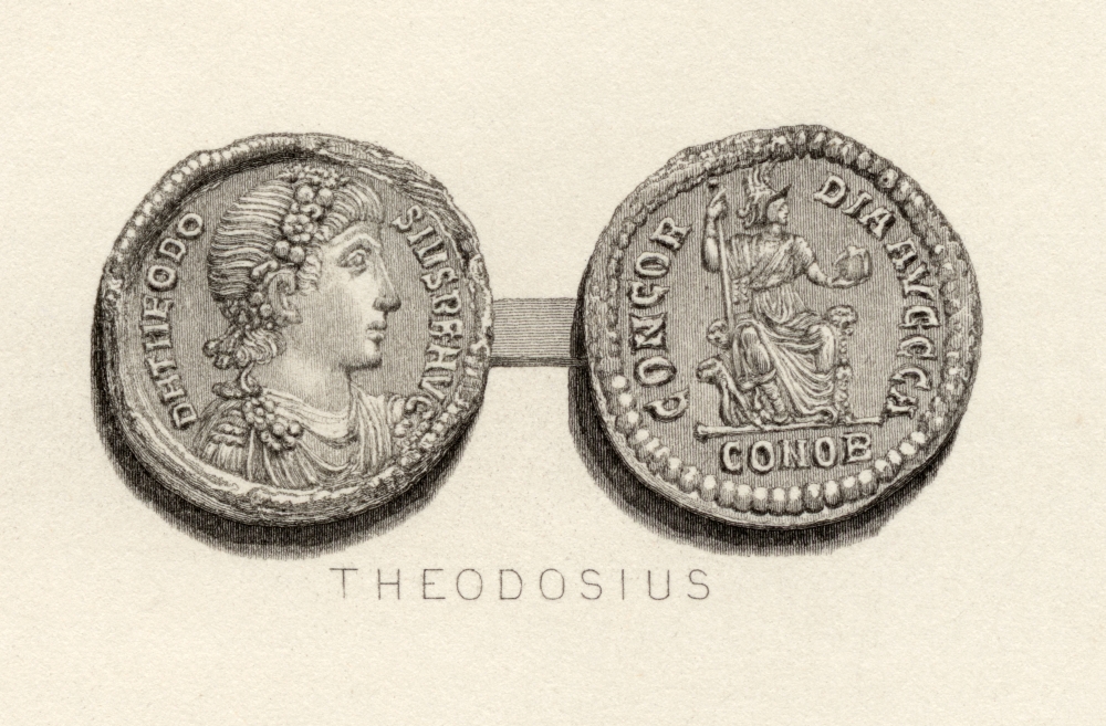 - Solidus Coin From The Time Of Theodosius The Great Flavius Theodosius AD 347-395 Roman Emperor
