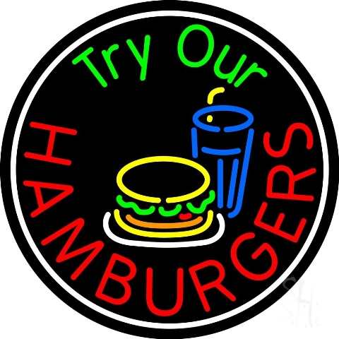 Sign Store N105-4619 26 x 3 x 26 in. Try Our Hamburgers Circle Neon Sign - Multi Colors