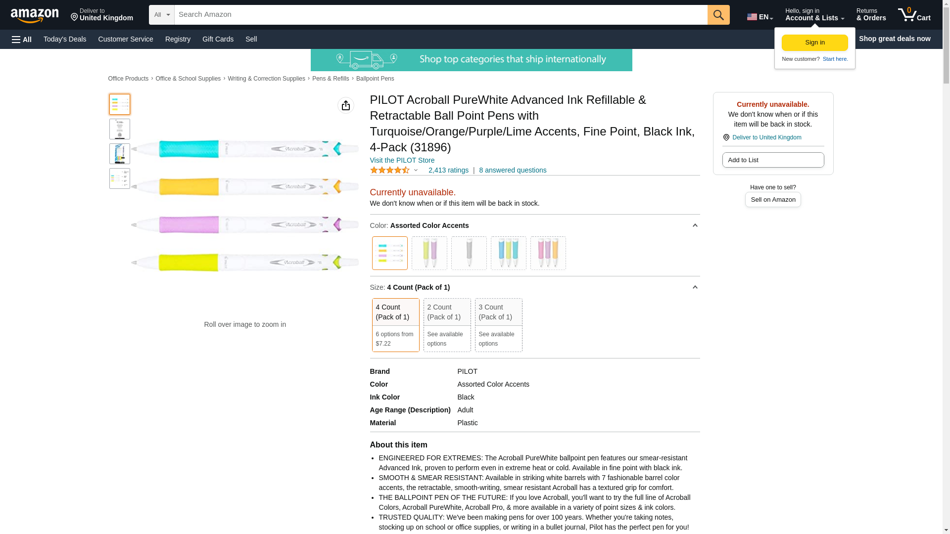 Amazon.com : PILOT Acroball PureWhite Advanced Ink Refillable & Retractable Ball Point Pens with Turquoise/Orange/Purple/Lime Accents, Fine Point, Black Ink, 4-Pack (31896) : Gel Ink Rollerball Pens : Office Products
